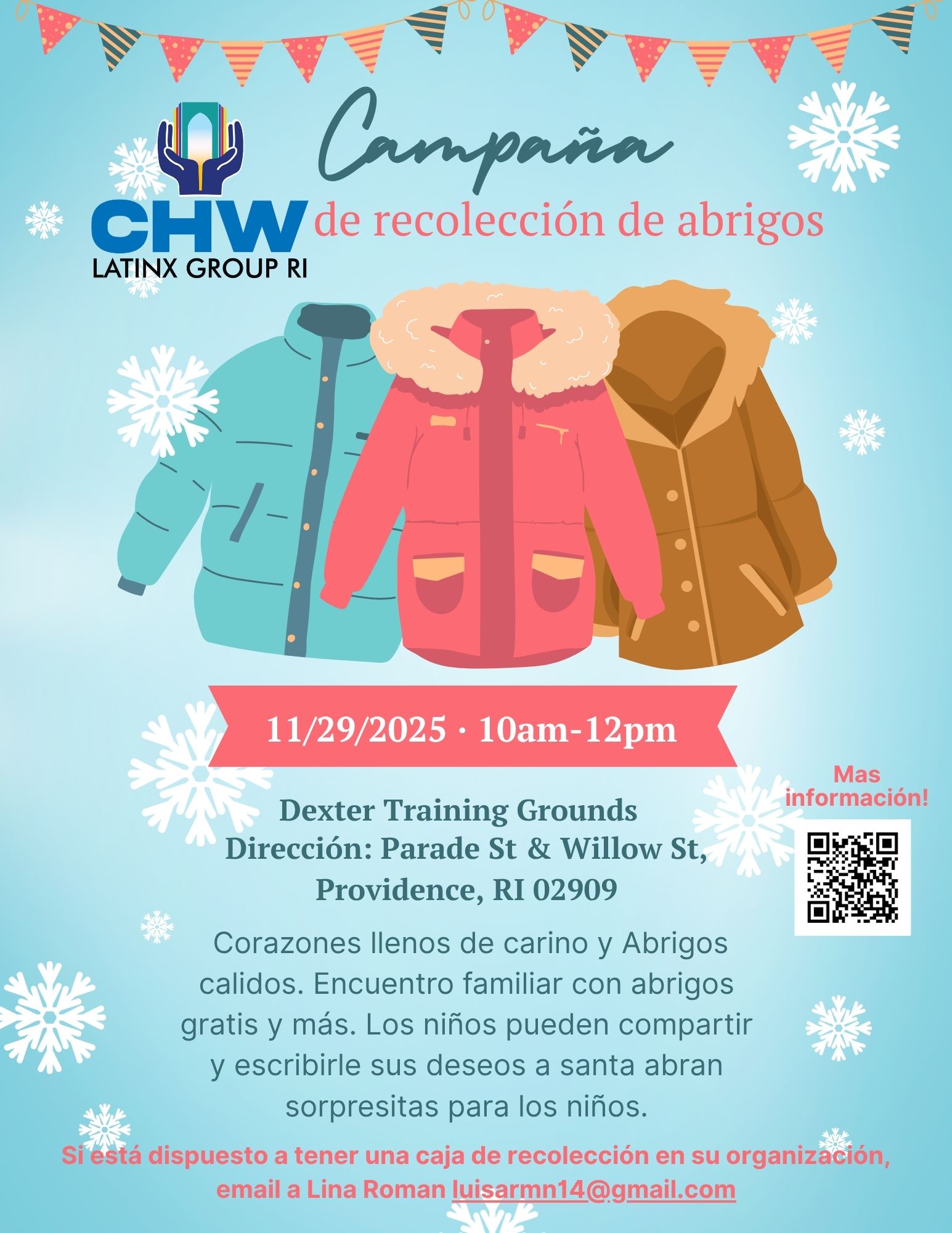 The Latinx CHW Support group has organized a winter coat drive. Donate or get coats for your family!